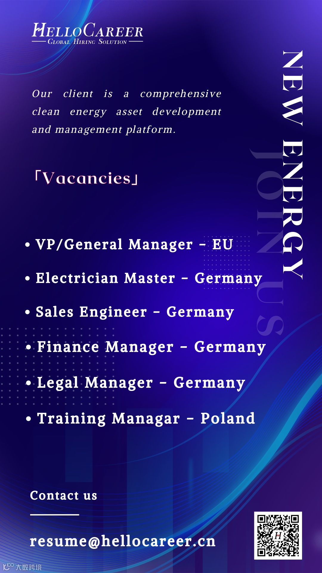 Bachelor's degree or above, with a background in marketing or science and engineering (major in power electronics or electrical automation is preferred)