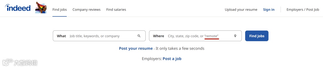 我们发现,在很多国际求职者常用的平台上,“remote”已经成为一个常用关键词,甚至一个固定搜索选项。