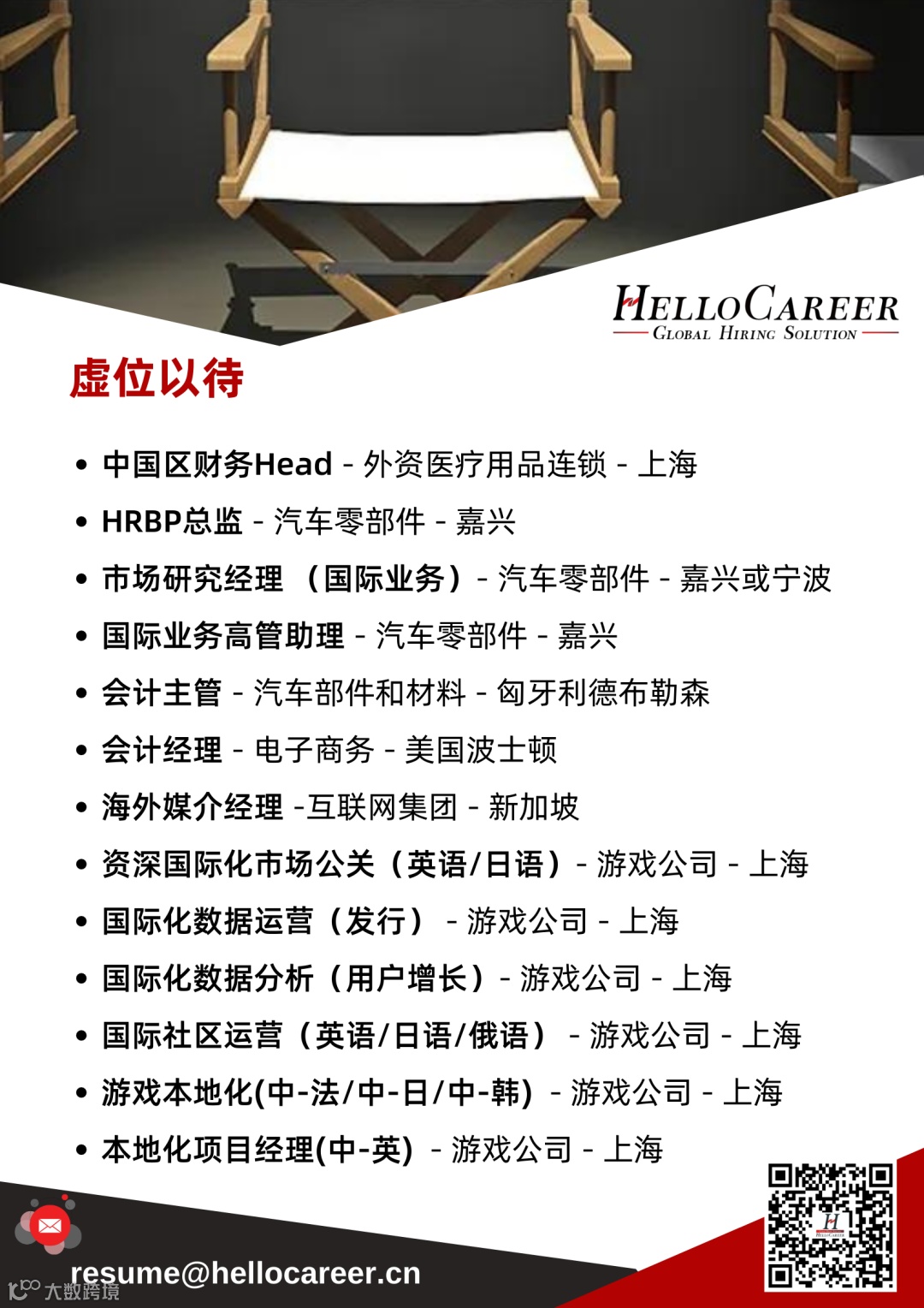 负责国际销售事业部的招聘、绩效、团队文化等方面的人力资源工作