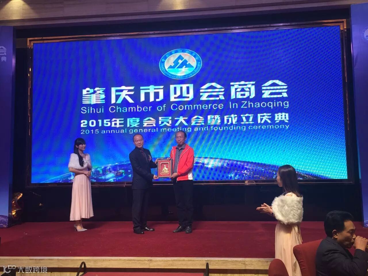 大会庆典上,由四会市青年商会秘书长曾祥斌做代表赠送商会礼品,祝贺肇庆四会商会成立庆典圆满成功,大展鸿图。