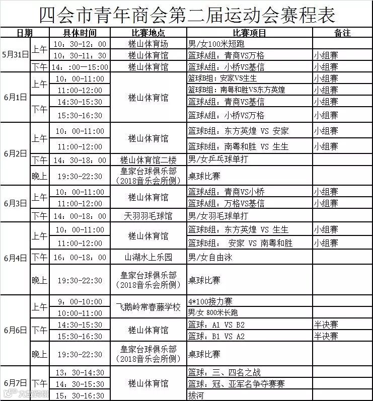 3、原定6月6日早上举行的篮球半决赛改为下午举行,