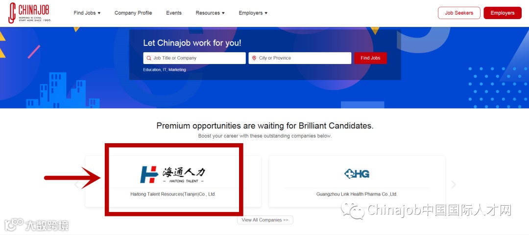 在首页“C位”展示用户LOGO,点击链接用户个性化网页,可添加文字、图片或视频等介绍,以及不限量发布职位需求、查询简历。欢迎各类外籍人才服务机构使用该专栏。
