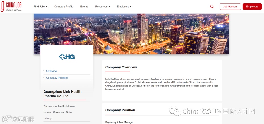 (以下简称Chinajob)成立于1995年,是由科学技术部国外人才研究中心主办,以开发国际人力资源促进国际人才交流为服务宗旨的大型专业网站。