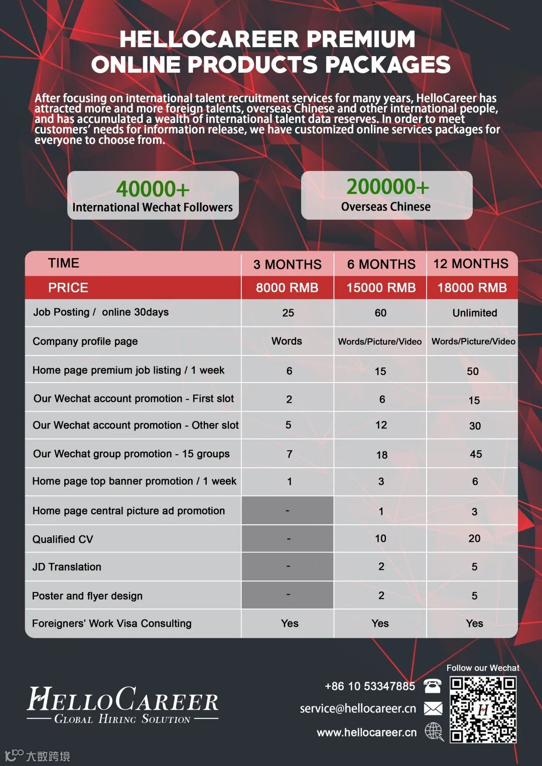 导读:HelloCareer在线招聘工具包——中小企业零星招聘国际人才的高性价比之选。