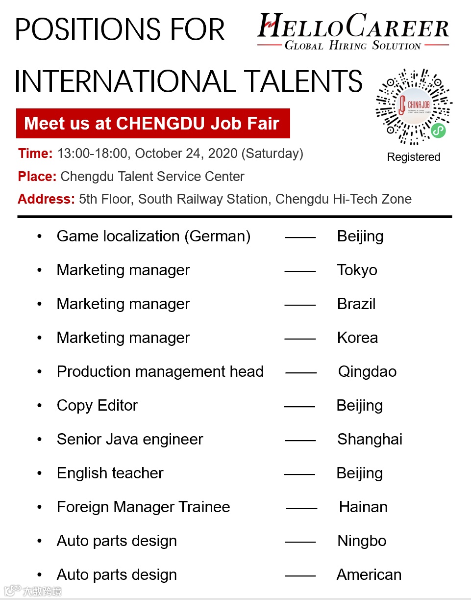 30 companies with hundreds of positions are waiting for you in Chengdu!