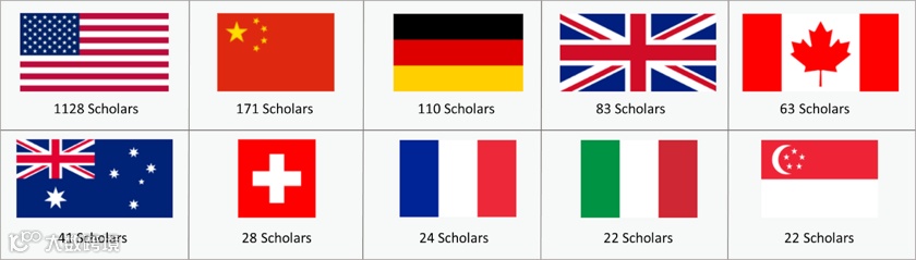 学者人数TOP 10国家。