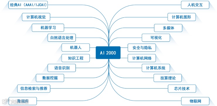 AI 2000下的20个子领域。