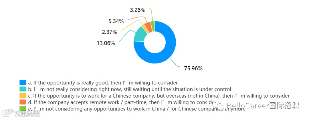 •The above categories of data demonstrate that although the epidemic has some impact on the career choices of foreign talents, it is generally temporary, and most of them are still willing to consider working and developing opportunities in China. The vast majority of foreigners who have left China are to temporarily avoid the current virus outbreak happening.