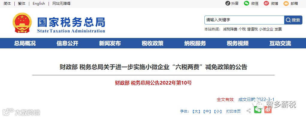 关于进一步实施小微企业“六税两费”减免政策的公告