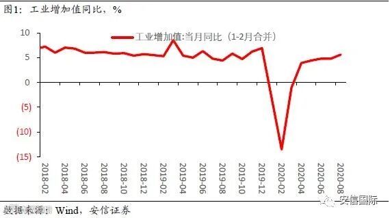8月规模以上工业增加值同比增速为5.6%,较上月大幅上涨0.8个百分点,上游产业生产扩张和基数效应共同拉升工增同比走强。