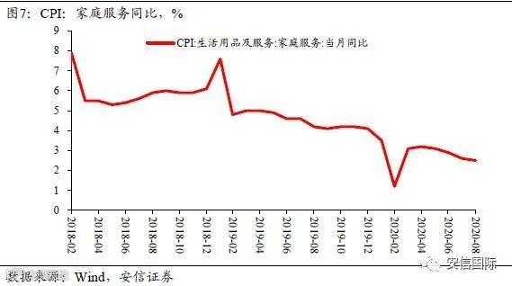 从已经公布的分行业数据看,通讯器材同比25.1%,较上月回升13.8个百分点;化妆品同比19%,较上月回升9.8个百分点;文化办公用品同比9.4%,较上月回升8.9个百分点,可选消费继续快速恢复,拉动社零增速回升。粮油食品、烟酒等必选消费较7月出现回落,这可能反映了疫情对居民收入端的负面影响。