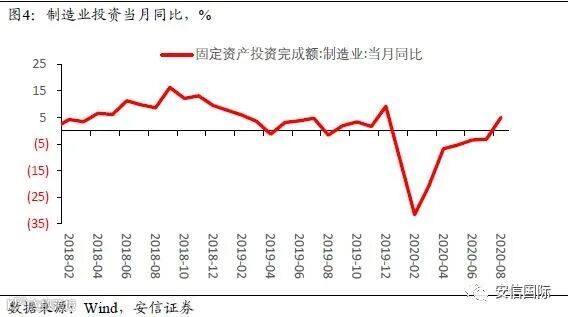 8月制造业投资增速5.0%,较上月显著回升8.1个百分点。从已有的分项数据看,化学原料及制品、铁路船舶和其它交通运输设备、医药、通用设备等行业回升最为显著;而有色金属冶炼及延压加工、电器机械、金属制品等行业出现回落。制造业投资的明显回升,可能反映出厂商投资意愿开始明显修复。