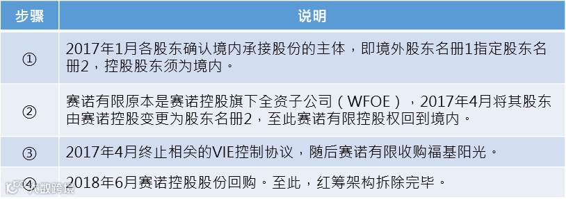 上述步骤1是为了确认架构拆除后的股东权益。步骤2、3则是拆红筹的主要过程,历时约3个月。步骤4则是完成资金或应收应付款的交割,可自行选择合适
