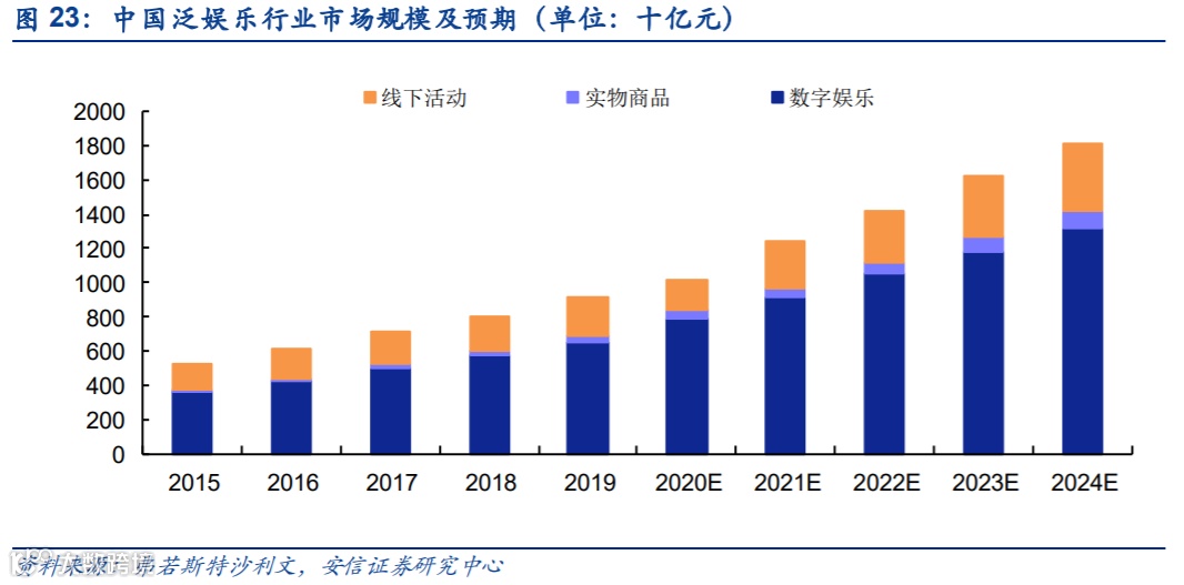 据弗若斯特沙利文报告,近年来中国泛娱乐市场发展迅速。中国泛娱乐行业的市场规模(按零售价值计)自2015年的5,277亿元增长至2019年9,166亿元,复合年增长率为14.8%。