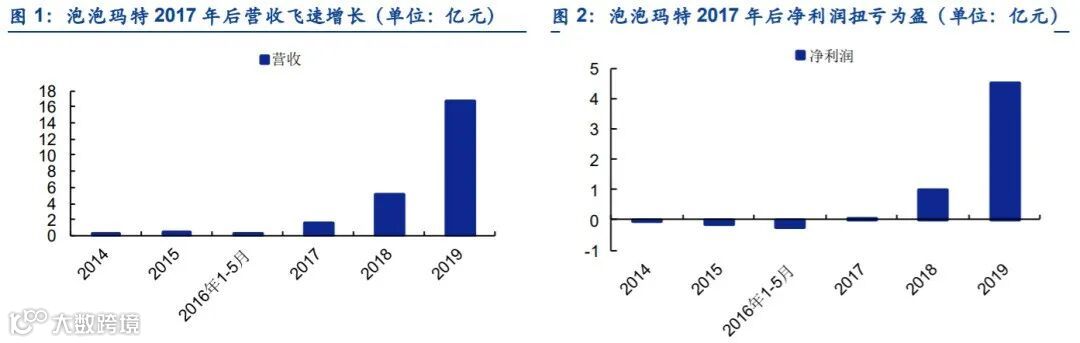 根据招股书显示,2017-2019年泡泡玛特实现营收1.58亿元/5.14亿元/16.83亿元,2018年和2019年的同比增幅分别为225.4%/ 227.2%;净利润方面,2017-2019年实现净利润160万元/9950万元/4.51亿元,2018年和2019年的同比增幅高达6119%/353%。