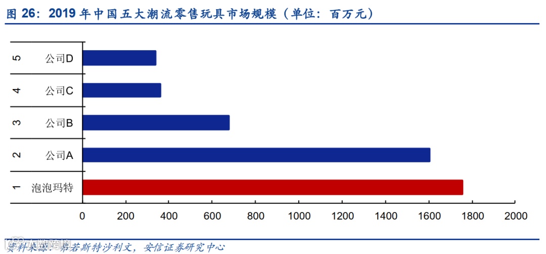根据弗若斯特沙利文报告,分别以2019年的收益及2017年至2019年的收益增长计,泡泡玛特是中国最大且增长最快的潮流玩具公司。