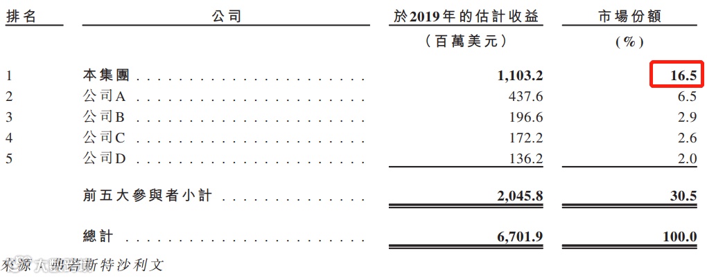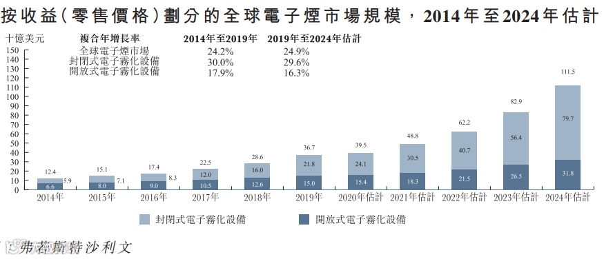 根据弗若斯特沙利文的资料,经过10年发展,公司2019年的全球市场份额已达到16.5%(按收益计),是全球最大的电子雾化设备制造商。