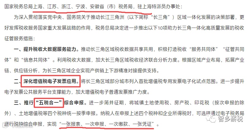 将长三角区域部分城市,列入首批增值税专用发票电子化试点范围。