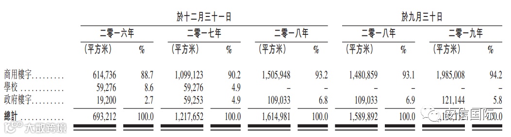 若进一步拆分物业管理服务,兴业物联的物业类别以商用楼宇为主,其在管建筑面积占总在管建筑面积的94.2%,全部由正商集团开发,剩余的是学校及政府楼宇,由独立业主开发,占管建筑面积比例较小。正因为如此,兴业物联大部分物业管理服务收益来自正商集团,2016-2018年,分别占公司物业管理及增值服务收益的94%、88.2%、88.3%,2019年前9个月占比略微下降至87.7%。