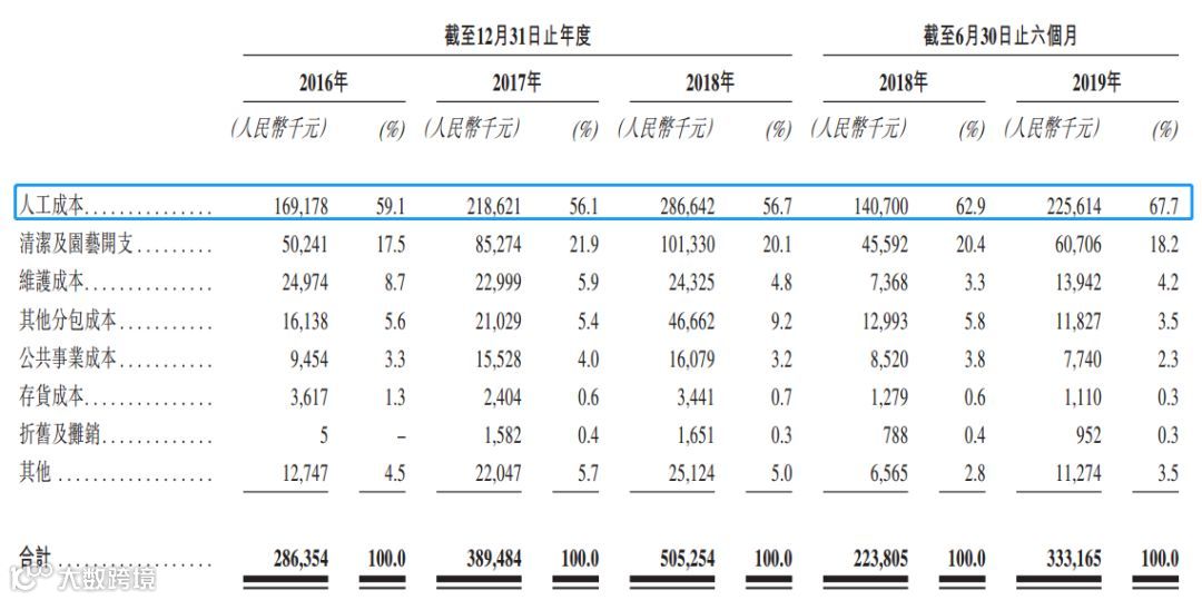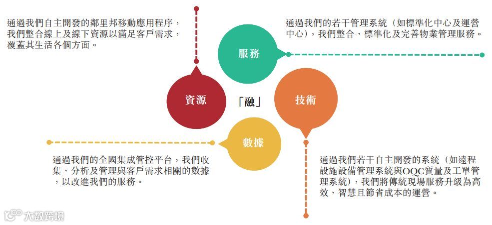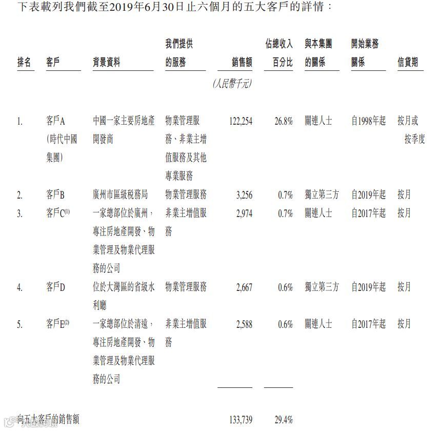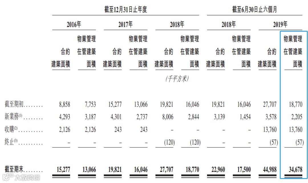 截至2019年6月30日,公司位于中国的204个在管物业管理服务项目及六个市政环卫项目中有191个位于大湾区,约占在管总建筑面积的87.7%。 截至2019年6月30日,其物业管理在管建筑面积大幅增加主要归因于2019年3月收购了广州东康(广东省一家知名物业管理及市政环卫服务供应商),令物业组合增加了约1340万平方米的物业管理在管建筑面积。