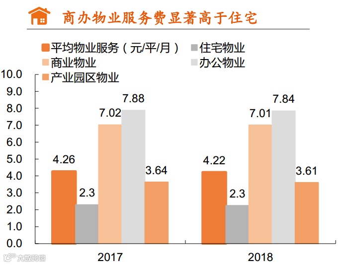 非住宅物业的拓展有助于管理组合优化,同时考虑到商业(7.01元/平/月)、办公(7.84元/平/月)、产业园区(3.61元/平/月)等非住宅物业较高的物业服务费收入,其拓展亦有助于整体平均物业服务收入的抬升。