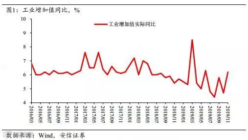 受基建发力和地产投资温和反弹的双重影响,11月规模以上工业增加值增速大幅回升1.5个百分点至6.2%,显示经济出现短期回暖。