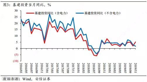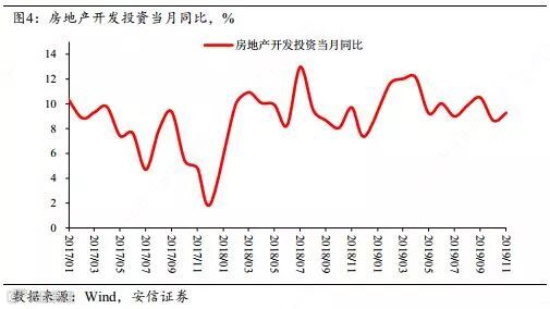11月基建投资(含电力)增速5.2%,较上月大幅回升3.2个百分点。基建投资的回升可能部分受到去年低基数的提振,但基建相关政策持续落地的影响也不容忽视。基建回升带动黑色系生产和价格的回暖,并在权益市场相关板块形成映射。四季度以来基建相关政策频频出台,比如基建项目资本金比例下调,专项债使用领域进一步控制,专项债扩容并在明年一季度发行,这些政策无疑对基建投资形成支撑。但考虑到中央对地方政府债务的限制仍然偏严,地方政府加杠杆的意愿普遍偏弱,未来基建投资的增速可能表现温和。