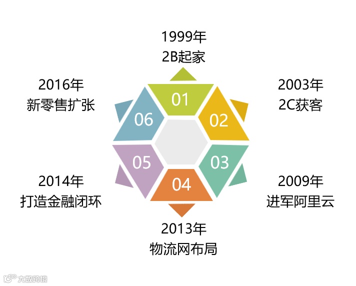1、电商巨无霸,在人口红利逐渐消退的情形下,专注零售核心业务的基础上,积极布局多元化业务以增加用户粘性和降低获客成本。