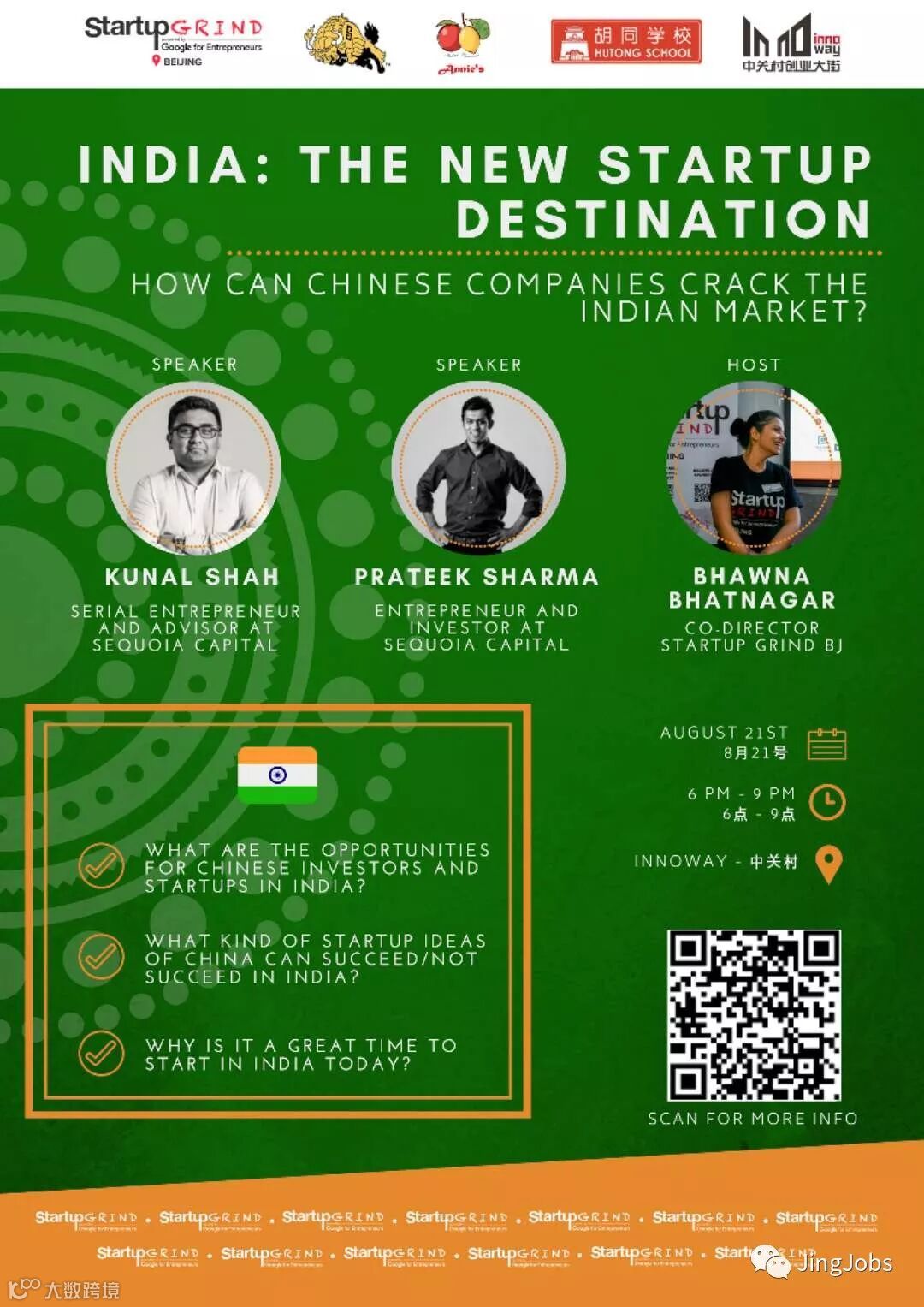 JingJobs is proud to be the media partner of Startup Grind's 2 upcoming events!