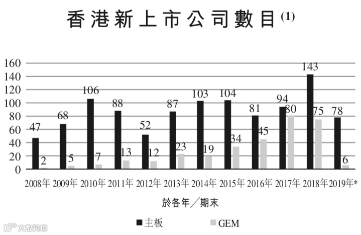 于2019年6月30日,于主板及GEM上市公司分别有1,996家及386家,其中143家及75家上市公司分别于2018年于主板及GEM新上市。