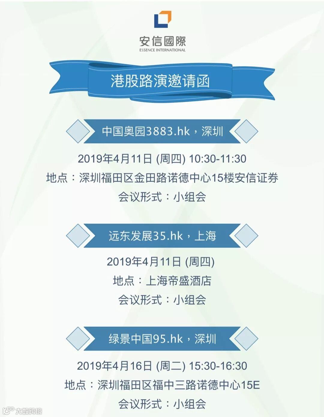 导读:安信国际将举办香港上市公司路演,借此诚邀您拨冗参加!