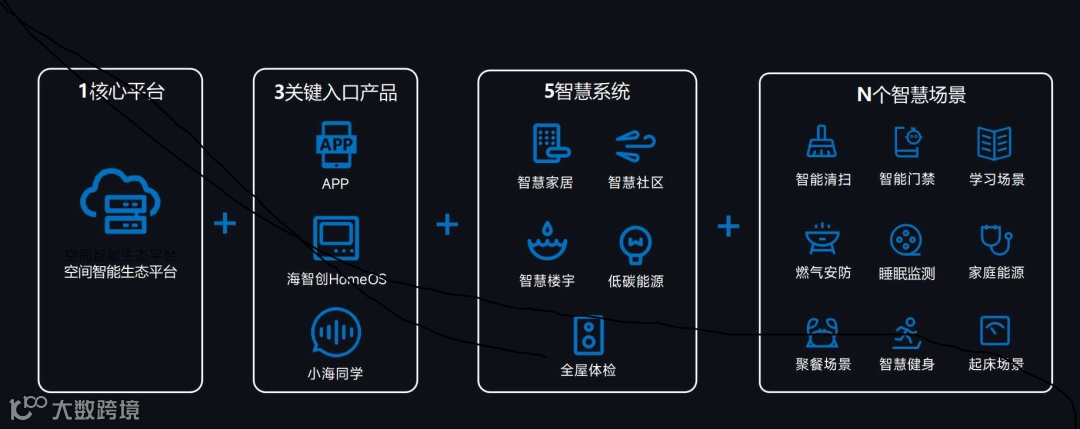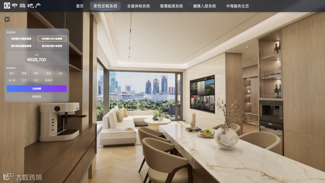 中海科技(海智创)将全屋体检系统、柔性定制系统、智慧能源系统、健康人居系统、中海服务生态集成到同一个系统,通过 AI、BIM、 IOT 三大底层技术,共用数字化平台底座,一屏集成。