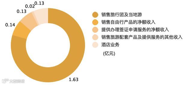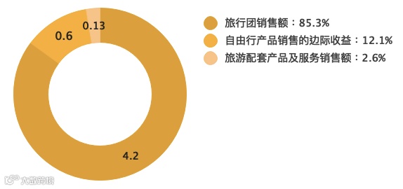 近三年,公司85%以上的收入都来源于旅行团销售额,2018年的收入分布如下: