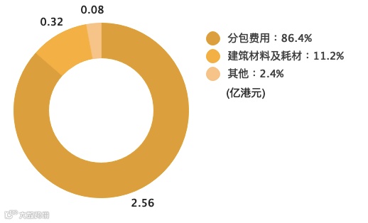 分包费用占采购额比重最大,过去几年都在75%以上。2017/18财年采购费用分布如下: