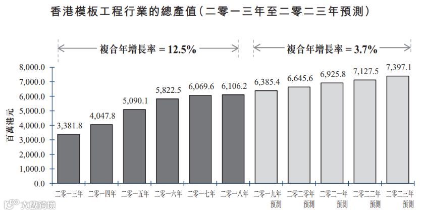 2018年香港模板工程市场规模达61.1亿港元,预计2019-2023年复合增速达3.7%。该集团在香港模板工程行业的市场份额约为6.5%。