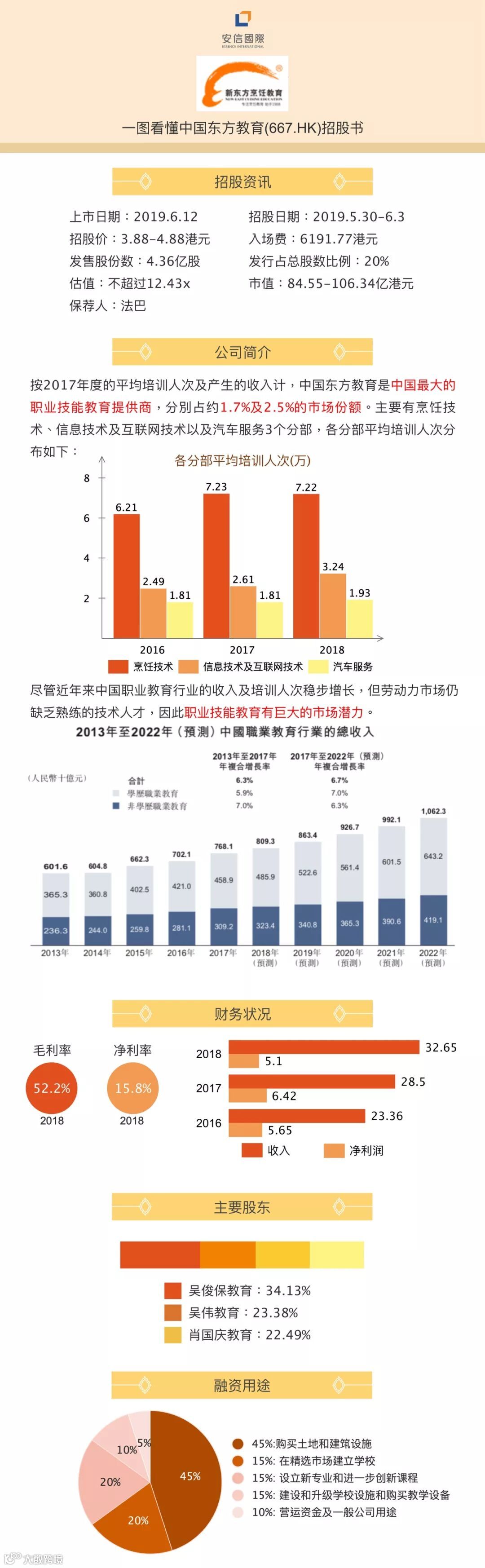 3)按照定价区间的下限来计算,集资额至少为16.92亿港元,创下了教育公司上市募资的新纪录,上市后将会成为港股教育板块中最大的技能培训教育企业,可适当关注。