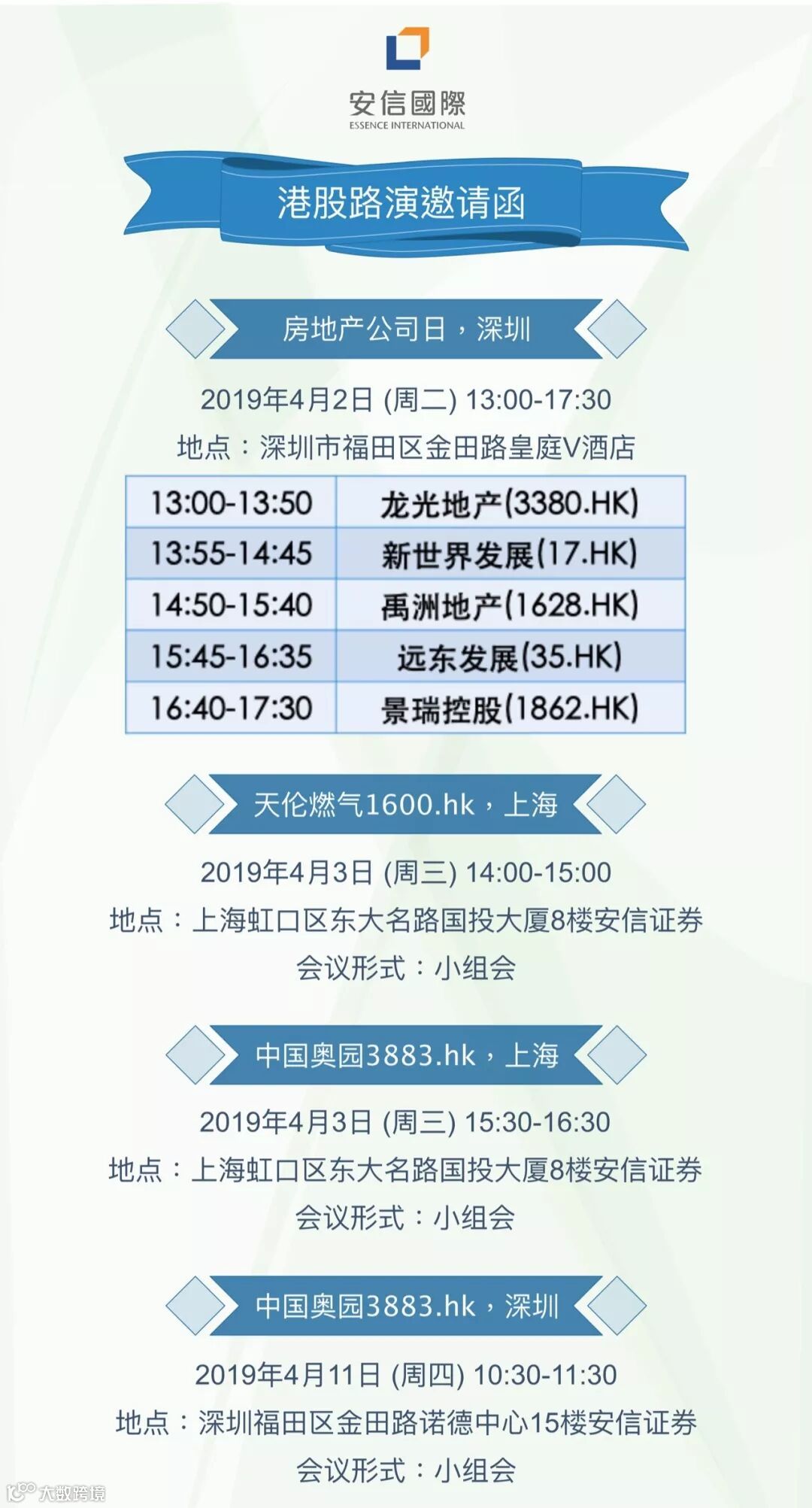 导读:安信国际将举办香港上市公司系列路演,借此诚邀您拨冗参加!