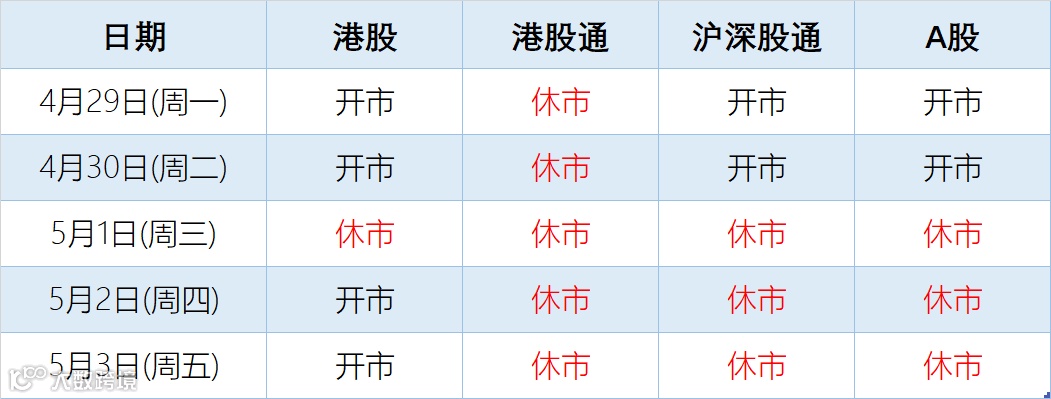 导读:因劳动节假期,证券市场休市安排如下:周三港股休市(5月1日)