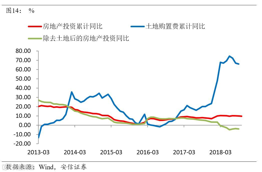 第三个解释或许更为重要。2018年以来市场一致的认识是,房地产企业加大了土地购置,土地购置费大幅增长;另一方面,今年的房地产投资数据一直在10%左右波动,因此倒算出来的包括建安等在内的其他部分投资同比出现负增长。所以,市场一度相信剔除土地后的实际投资并不乐观。