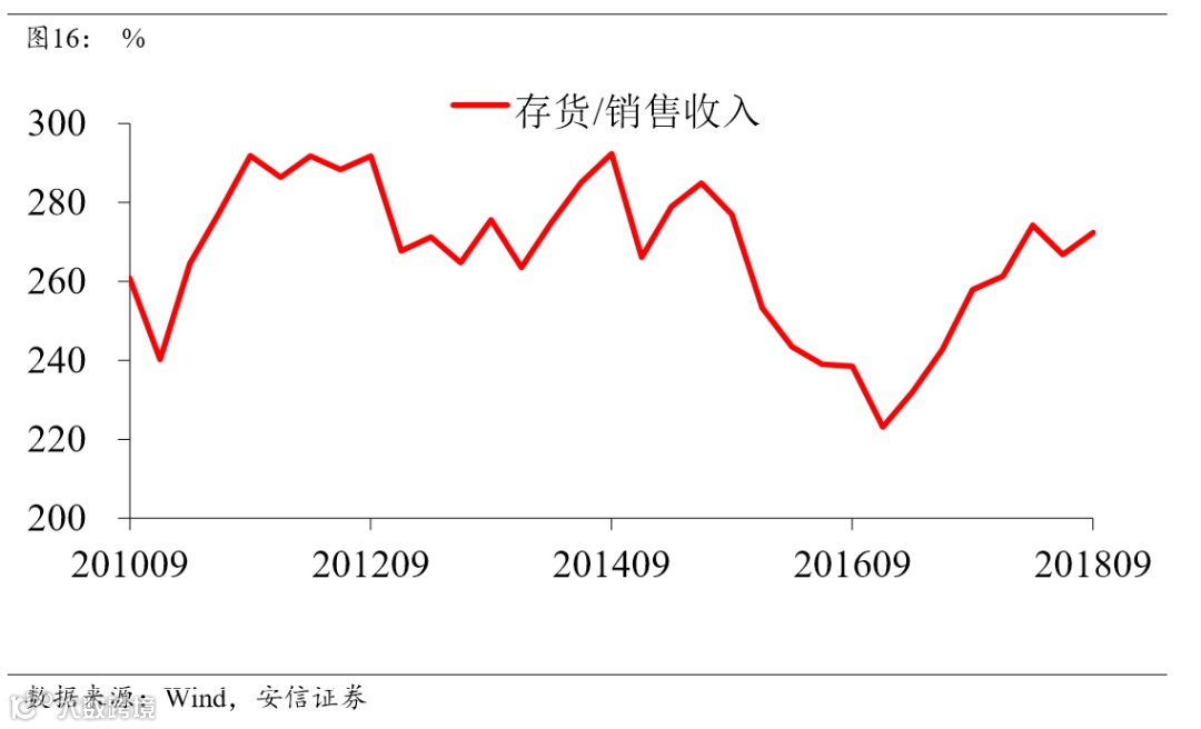 但我们注意到,从上市房企的存货/销售收入数据来看,房企补库存进入平稳期,那意味着房企用于土地购置的资金在明年可能会明显缩减,新开工将放缓,按照上述的逻辑,钢铁和水泥的需求将走弱。另一方面,供改行业的生产延续恢复,供给增加。这可能将导致钢铁水泥价格的明显走弱。