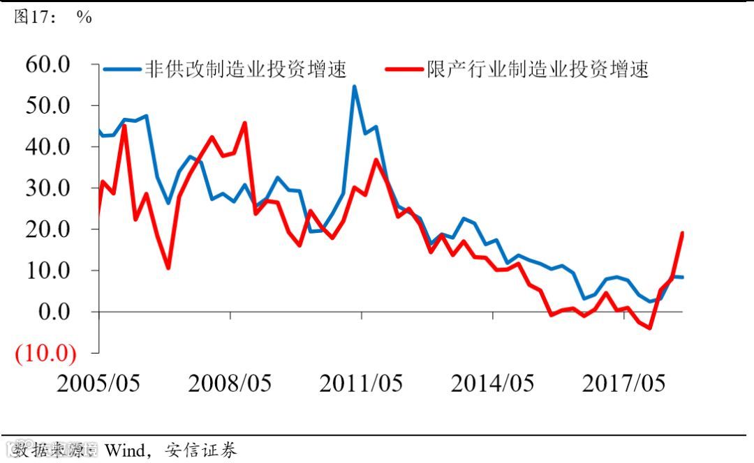 目前的关键问题是,这个回升将持续到什么时候。我们认为,这可能要等到供改行业的销售净利率回到相对正常的水平。目前来看,这个过程还将延续一段时间。因此,即使明年的非供改行业的制造业投资出现下降,供改行业的制造业投资依然保持高水平,形成对冲,导致制造业投资的下滑幅度可能并不会太大。