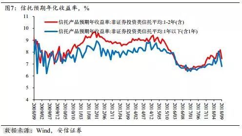 年初以来受监管影响,非标融资的负债端回表而资产端难以完全回表,进而表现为债券市场收益率下行而非标市场利率上行,非标融资大幅收缩。非标融资的主体主要来自地方政府、房地产企业以及一些民营企业。目前全国范围内房地产市场趋于冷清,而地方政府基建投资持续走弱,叠加专项债的大量发行,看起来非标市场需求端的收缩幅度可能在某个时间开始大于供给端,这将导致非标利率随之出现回落。如果非标利率形成趋势性的回落,那么这可能意味着民营企业的融资困难或许会开始缓解。9月份的非标利率下降多大程度上来源于数据扰动,多大程度上来自于趋势转折,需要引起关注,并继续观察。