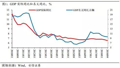 今年3季度,国内GDP实际同比6.5%,较2季度回落0.2个百分点;名义同比9.6%,较2季度回落0.2个百分点。
