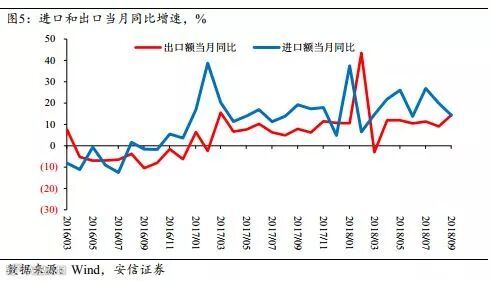 3季度进口同比20.1%,较上季度轻微回落0.4个百分点;出口同比11.7%,较上季度轻微回升0.2个百分点。进出口整体维持在较高水平。
