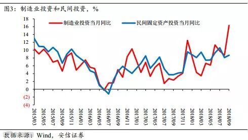 制造业投资3季度同比11.8%,较2季度上升3.5个百分点,其中9月当月同比16.3%,较上月大幅上涨7.6个百分点。分项看,食品、金属、计算机及通信的单月涨幅居前。