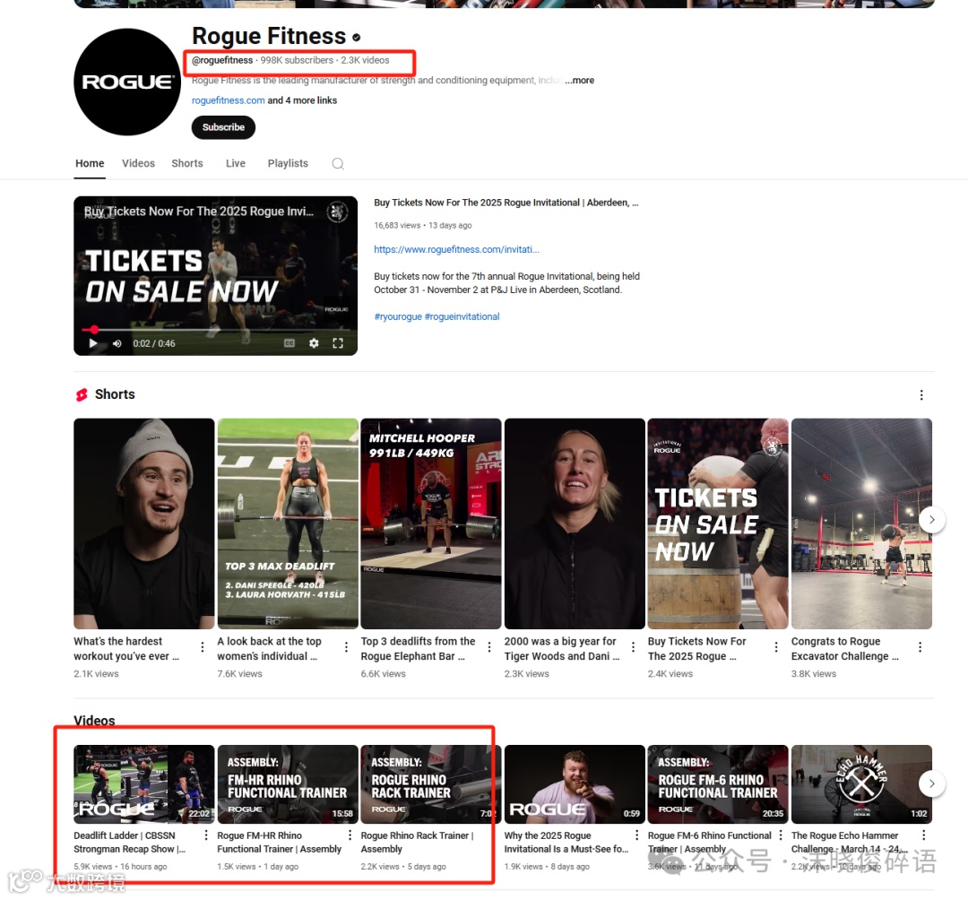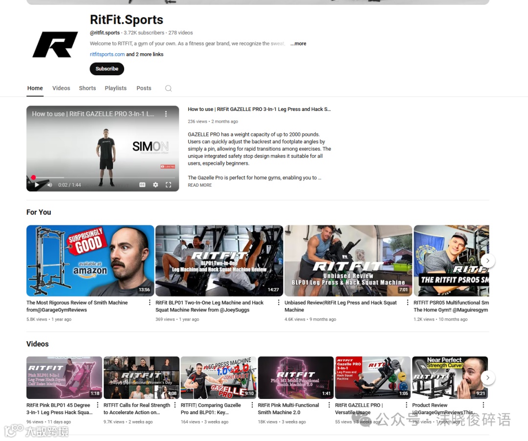 而RitfitSports则忽视了Youtube这个重要的渠道。