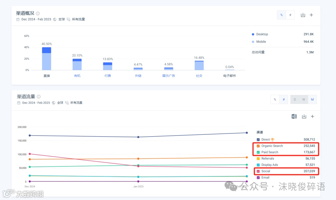 付费流量主要来自谷歌,社交流量也有一定占比。