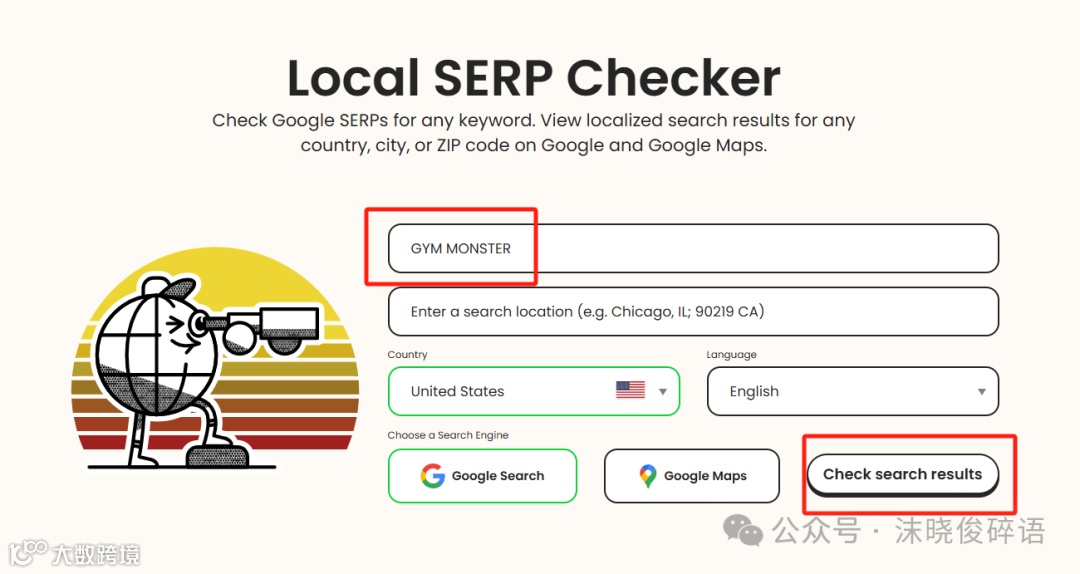 我们来到Brightlocal,输入GYM MONSTER,后点击Check search results。