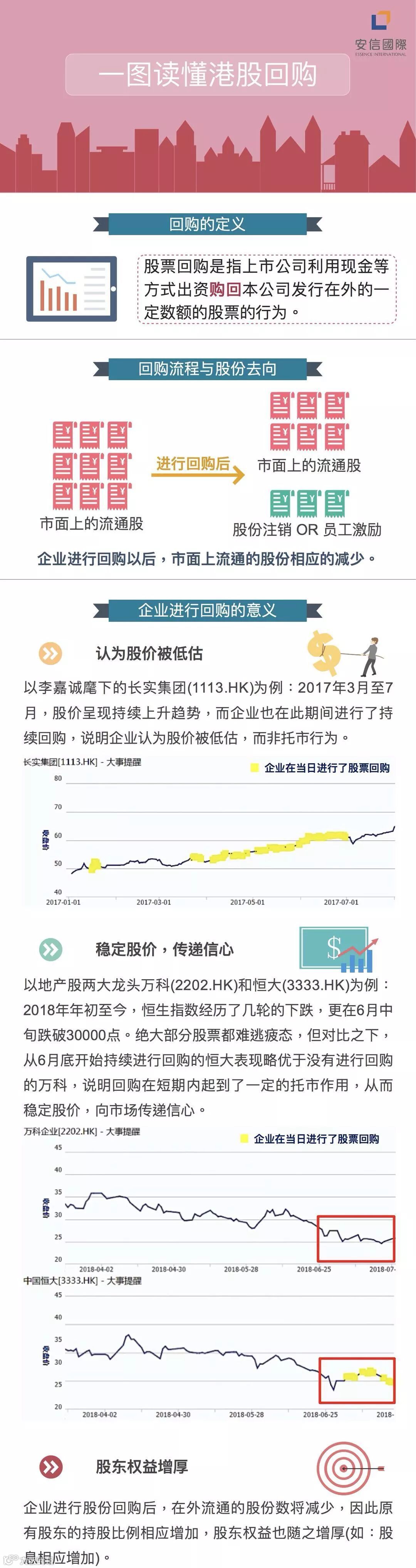 腾讯(700.hk)自9月7日进行了近四年来的首次回购后,到10月12日腾讯连续进行大额回购。累计回购量284.8万股,累计斥资逾8.87亿元人民币。然而,在回购消息后,腾讯依然在进一步下跌,截至昨日已经跌到260港元。那么股份回购究竟是什么,回购对股价的意义又何在呢?接下来,安信国际将带您一图了解港股市场中的回购与其意义。