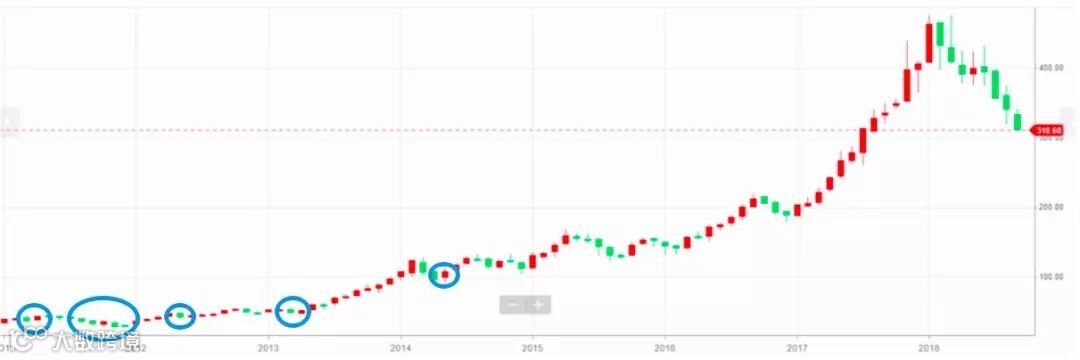 如下图所示,腾讯曾经在蓝色圈的这几个时间段进行了回购,回购额与回购量如下表所示。